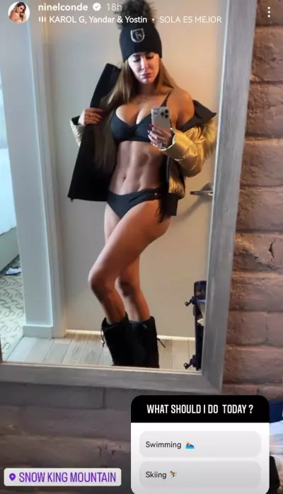 En este nevado destino no sólo ha disfrutado de practicar esquí, sino también se enfrentó a las frías temperaturas con un sensual bikini negro que primero mostró en sus historias de Instagram.